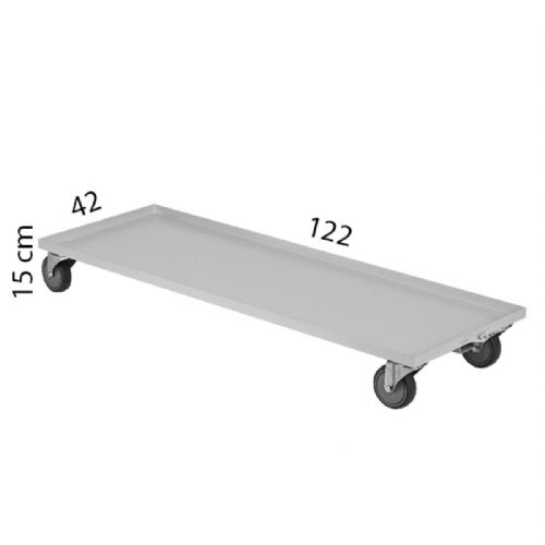 Teknik Özellikleri Dış Ölçüleri : 420*1220*150 mm Renk : Gri 4 tekerlekli yükçek arabası 400x1200 mm kasalar için uygundur.