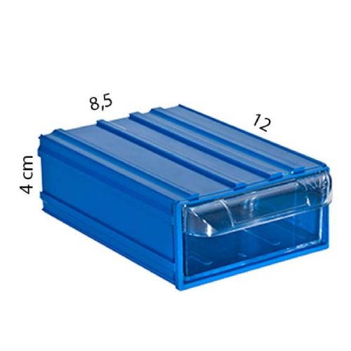 Dışı mavi, çekmecesi şeffaf plastiktir.