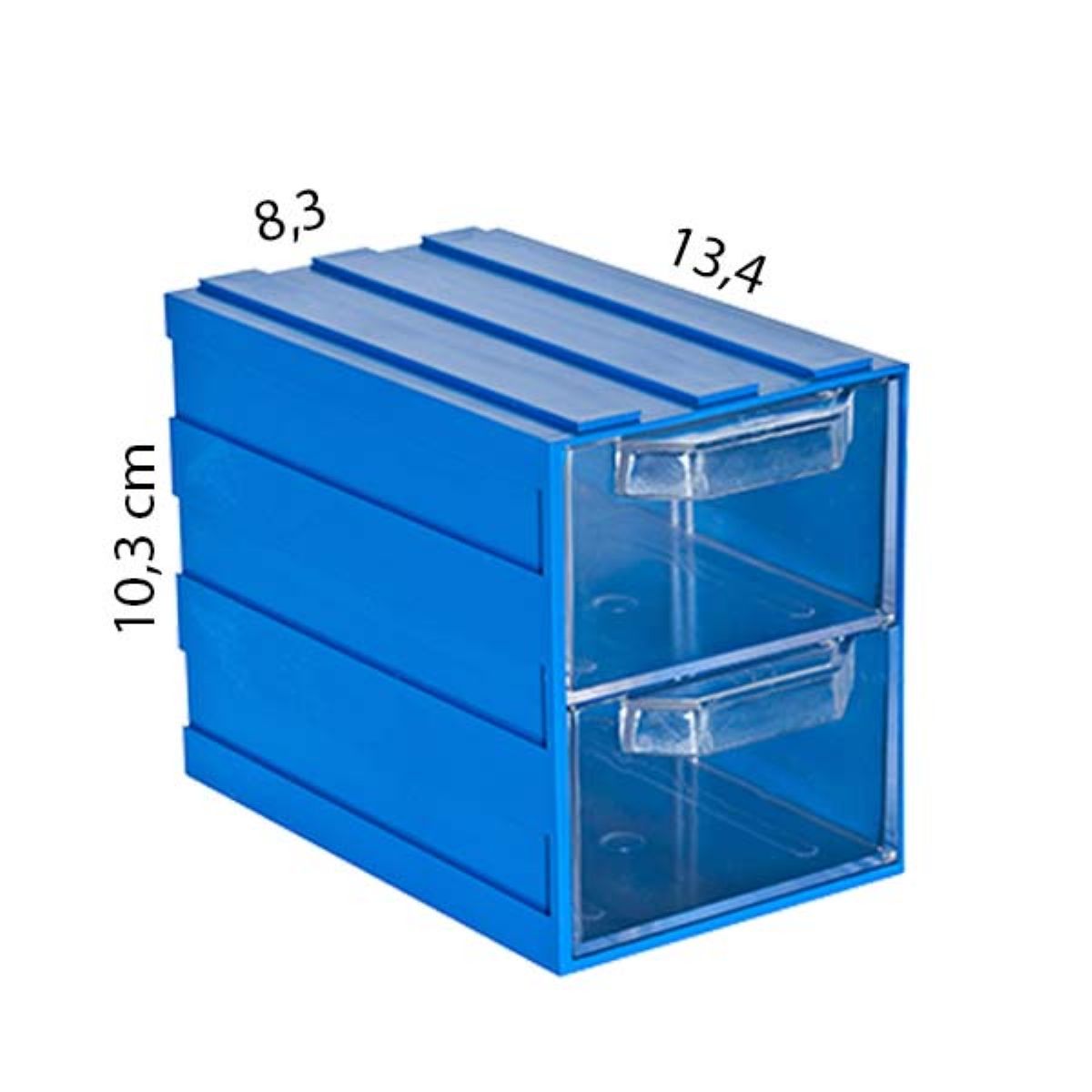 Dışı mavi, çekmecesi şeffaf plastiktir.