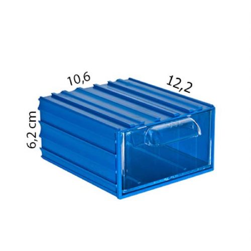Dışı mavi, çekmecesi şeffaf plastiktir.