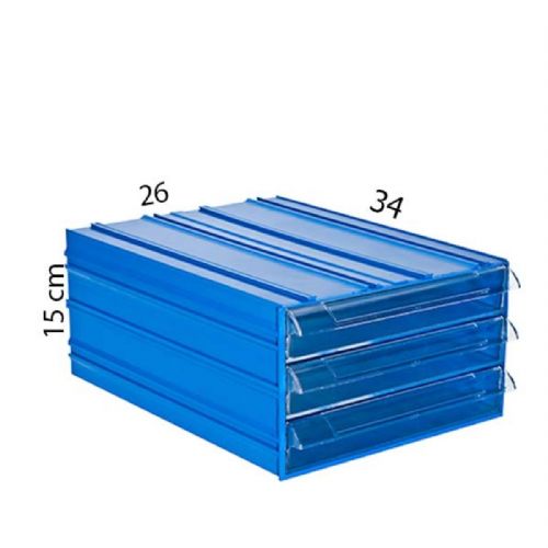 Dışı mavi, çekmecesi şeffaf plastiktir.