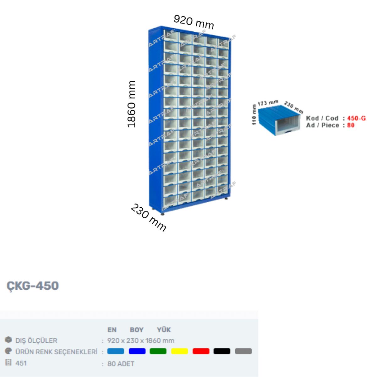 80 adet Plastik çekmeceli kutulu, metal gövdeli stand
